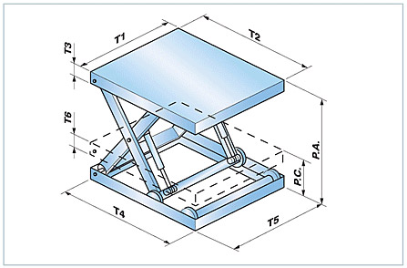 |  | 平臺的尺寸 上側 T1 =臺寬 T2 =臺長 T3 =框架的高度 下側 T4 =臺寬 T5 =臺長 T6 =框架的高度 打開 P.A. =打開長度 閉合 PC.=閉合長度 | | 方護罩的特性 |